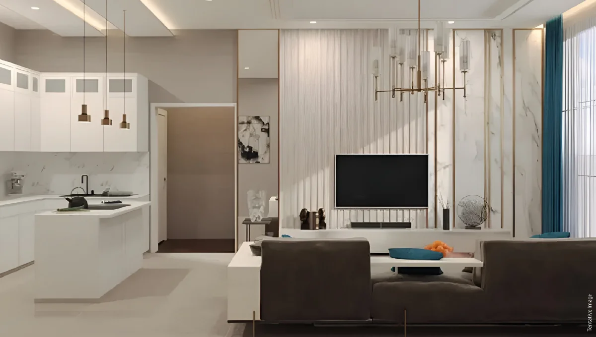 SIA by Grovy, a low-rise gem consisting of G + 10 levels, offers just 68 residences that seamlessly merge modern elegance with the natural beauty of the waterfront. Each residence is thoughtfully designed to provide breathtaking views of tranquil waters and the dynamic city skyline. This premier development redefines luxurious living with its striking exterior and refined interiors. It features high-end finishes, ample storage, neutral tones, and floor-to-ceiling windows that balance comfort, convenience, and sophistication.